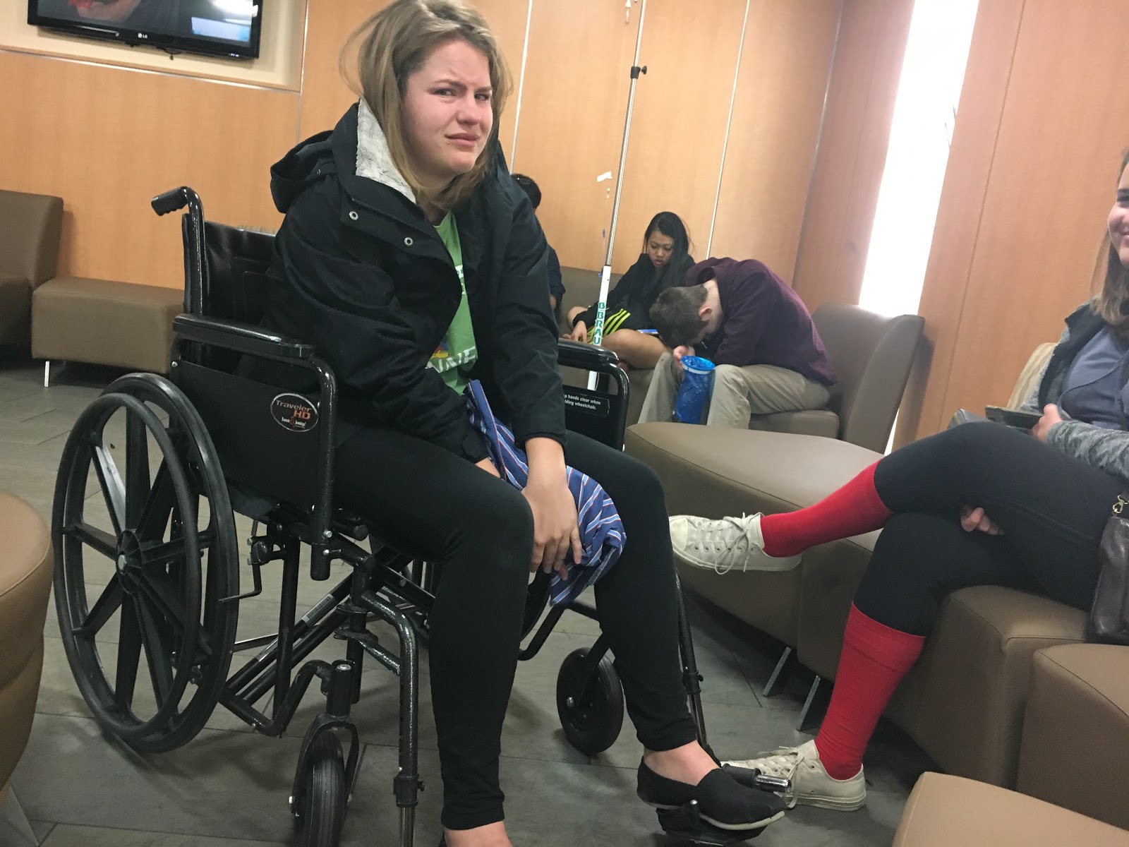Lydia tried to do the splits and busted herself. I had to take her to the hospital.