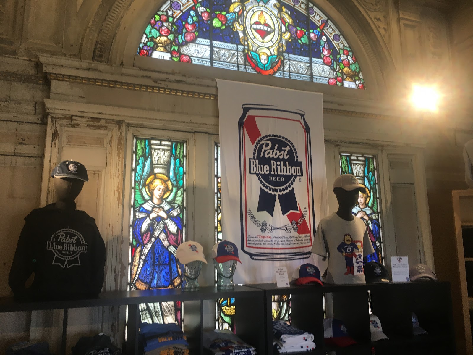 I guess Pabst Brewery bested and then ate one of its rivals, the Valentin Blatz Brewing Company. They bought a lot of the stuff from an auction at the Blatz mansion and a few pieces of it were on display here.